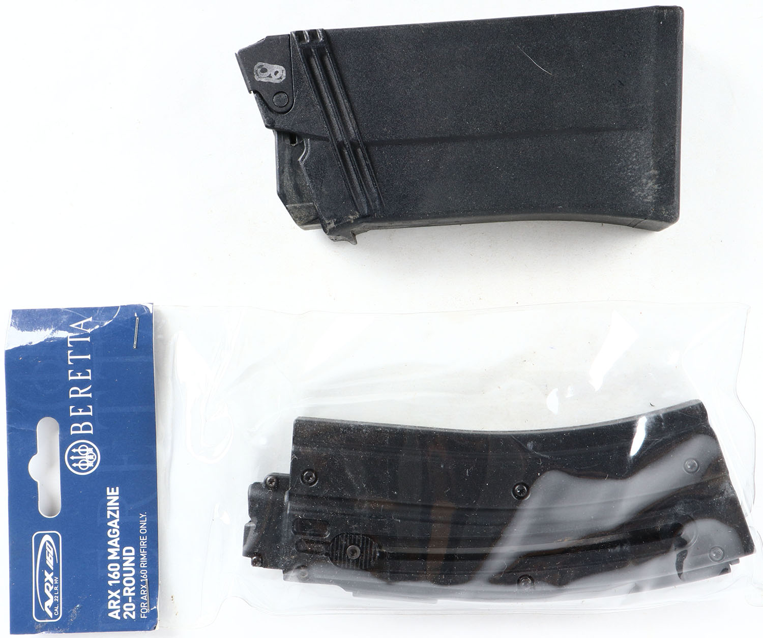 Lot of 2 mags, 1 Beretta .22 20 rd mag, and a Saiga Shotshell mag. Grade: Excellent - Value: 16 to 60