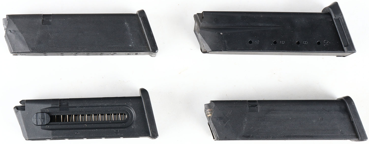 Lot of 4 pistol mags., .45, .357, .22 and 40 S&W . Grade: Very Good ++ - Value: 16 to 60