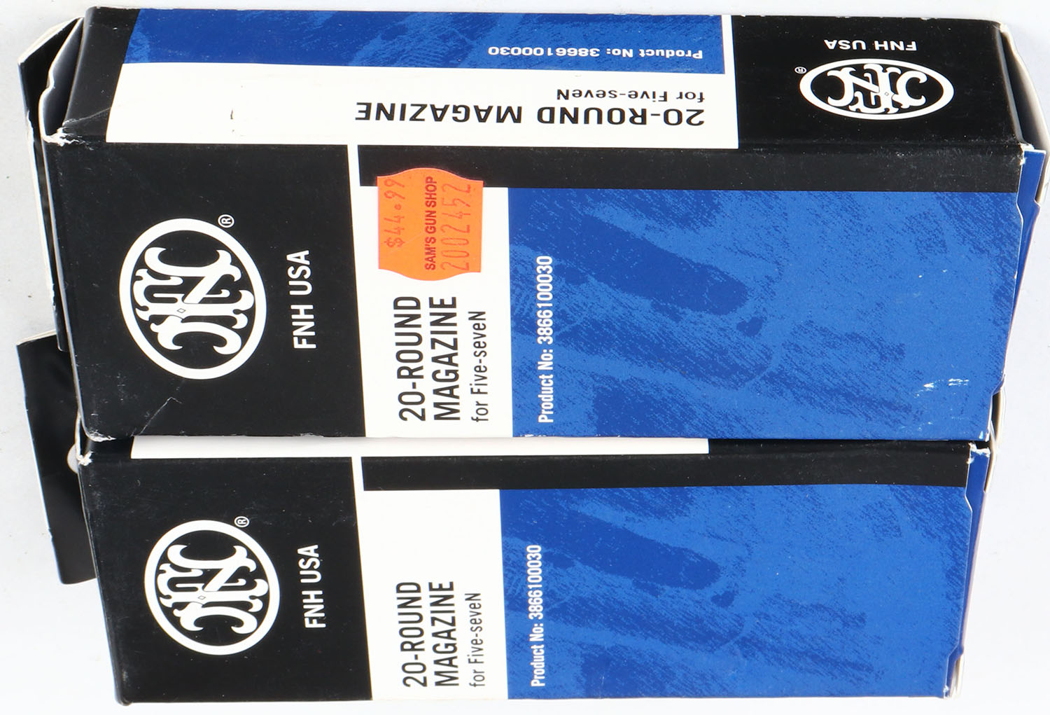 Lot of 2 FN, 20 RD mags., in orginal box, 5.7x28. Grade: Excellent ++ - Value: 30 to 90