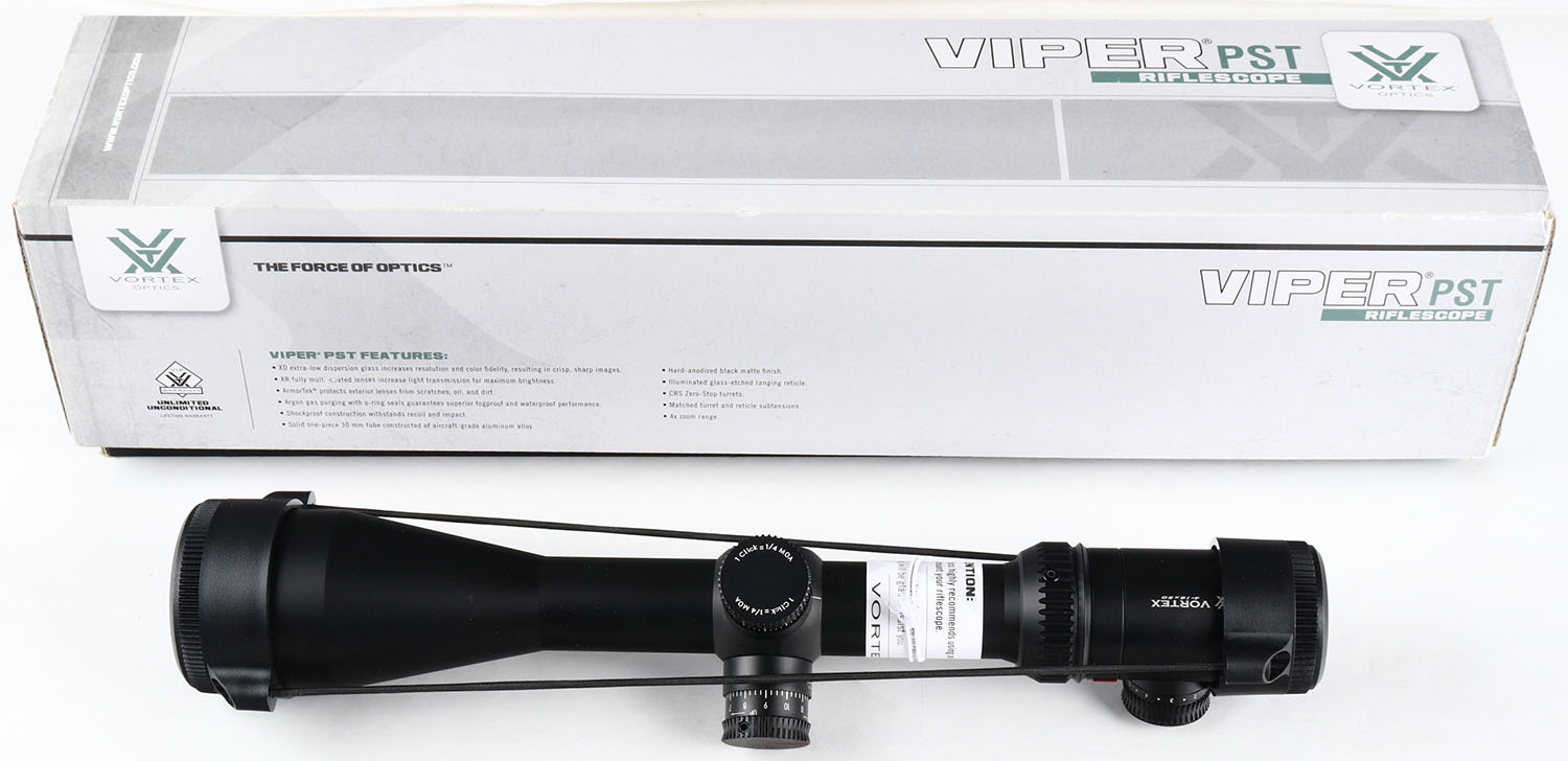 Vortex, Viper PST-416-A 4-16 x 50FFp, ERB-1 (MOA), Variable Magnification Rifle Scope, NIB, 30mm Tube Diameter. Grade: MINT - Value: 500 to 1500