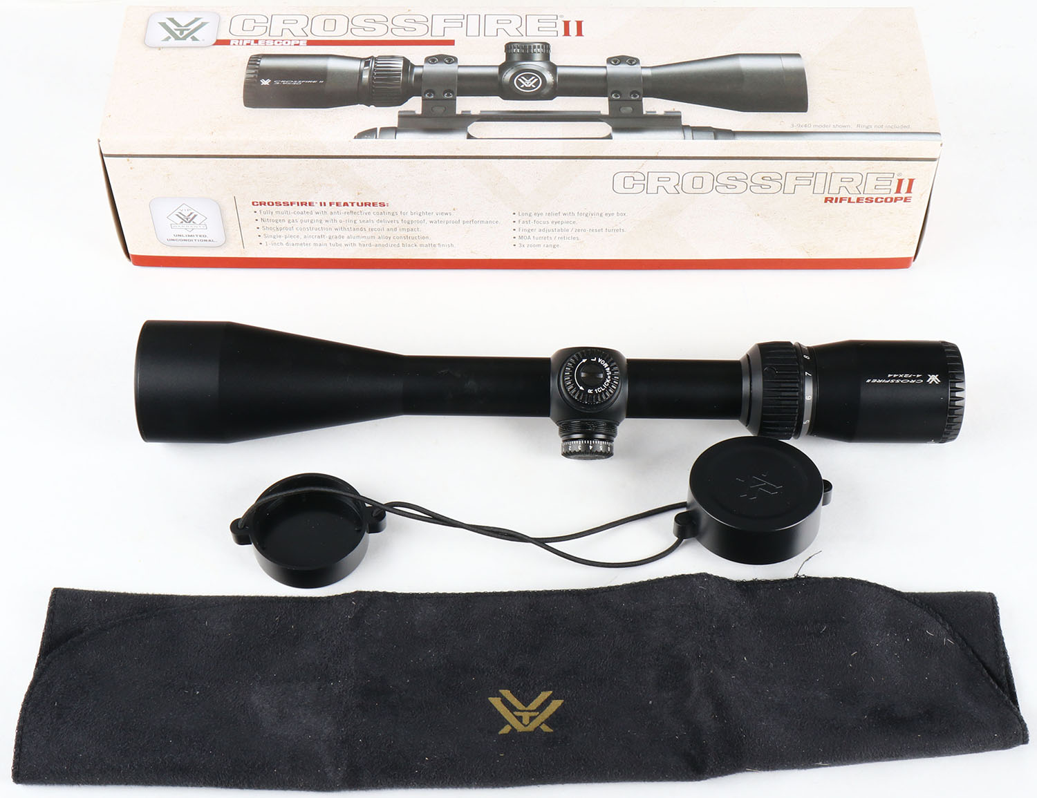Vortex, Crossfire II CF2-31015, 4-12 x 44 Dead-Hold BDC(MOA), Variable Magnification Rifle Scope, NIB. Grade: MINT - Value: 300 to 600