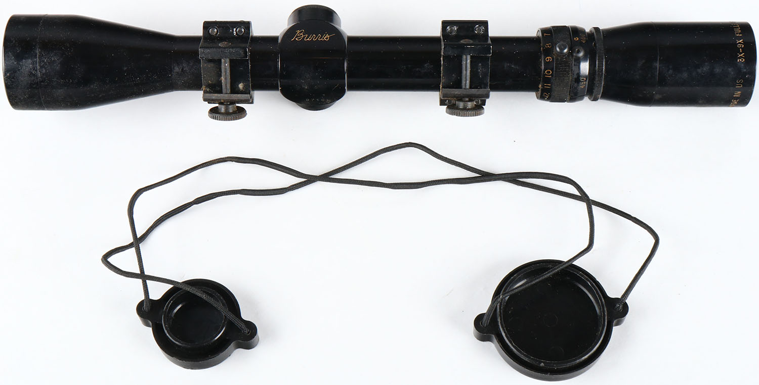 Burris Fullfield 3x-9x, fine crosshair reticle, glass is clear and crisp, some rust to screws. Grade: Excellent - Value: 100 to 300