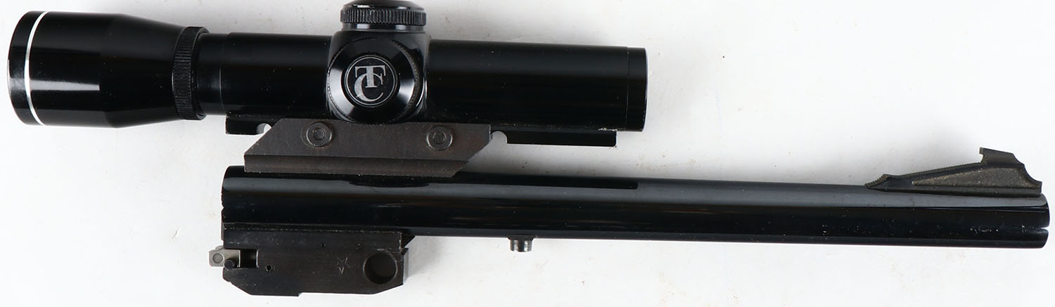 Thompson Center Arms barrel, 7mm, T/CU, with Thompson Center arms fixed scope, cross hairs are great, barrel is lightly used. Grade: Excellent ++ - Value: 50 to 250