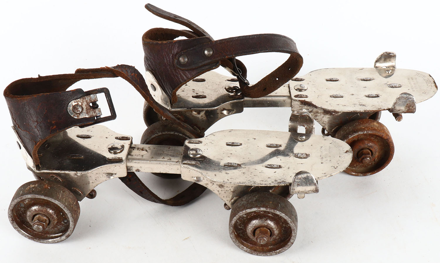 Winchester roller skates, No 3832, metal wheels, has leather strap. Grade: Very Good + - Value: 10 to 50