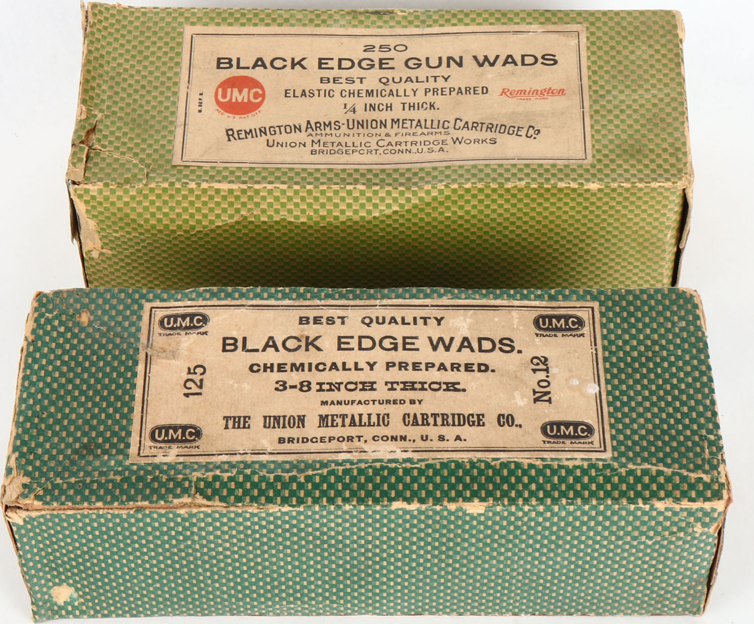 Lot of 2 UMC, Black Edge Gun Wads, 16 & 12ga, almost full. Grade: Very Good ++ - Value: 10 to 50