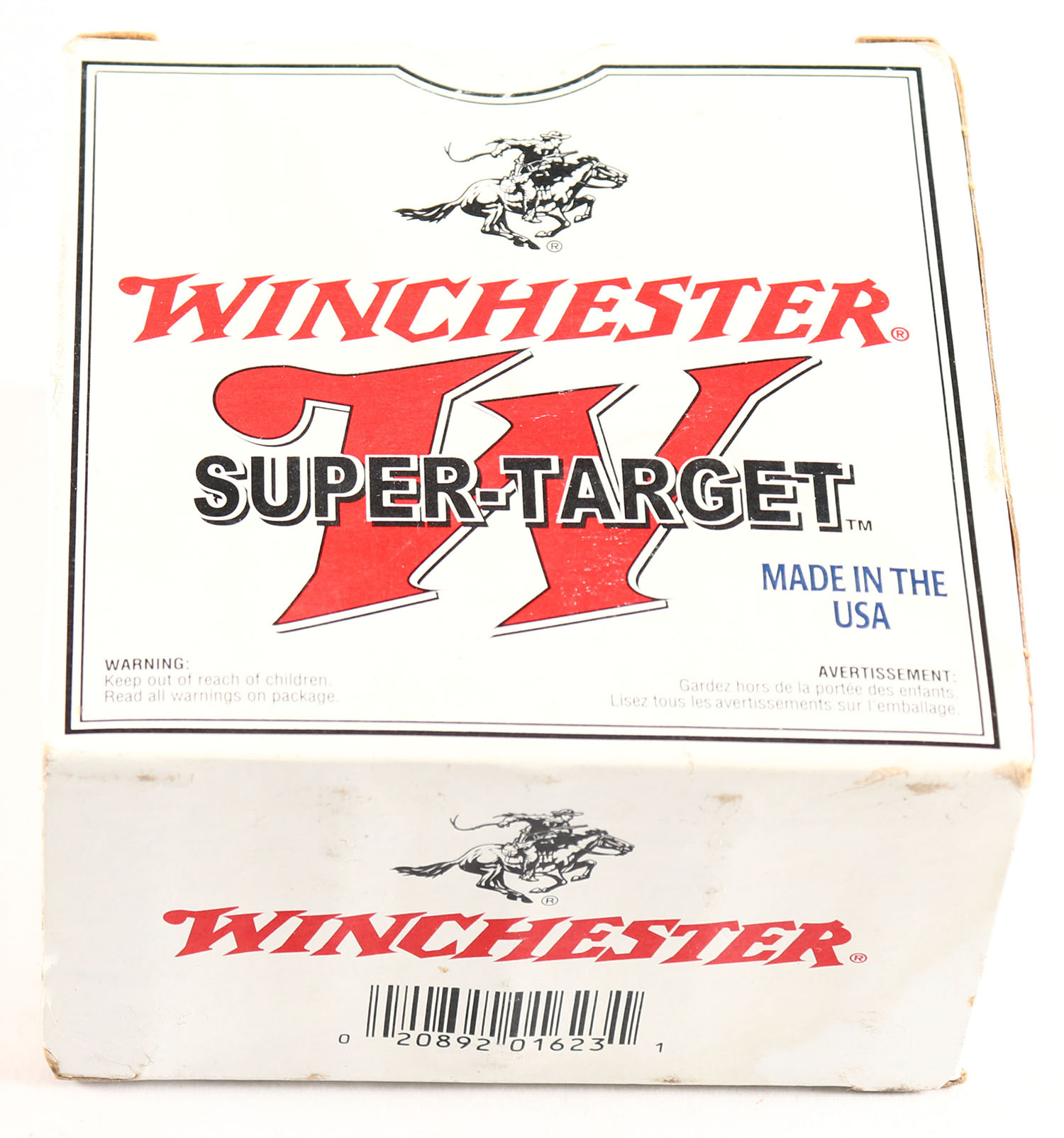 Winchester, Super Target, 12 ga., 1pc., Full, shot size 7 1/2 Lead, box is solid with great color, shells are excellent. Grade: Excellent ++ - Value: 10 to 40