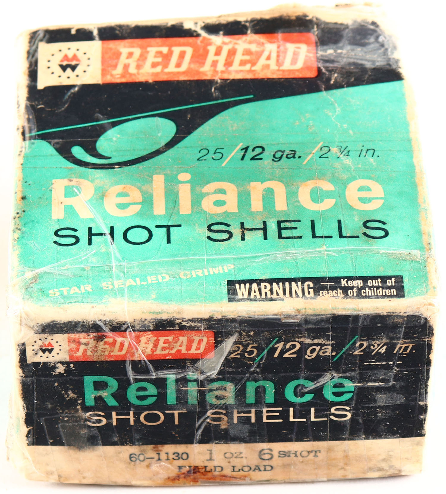 Montgomery Ward Red Head, 12ga., 1pc., Full, shot size 6, box has tape repair with very nice colors, shells are very good. Grade: Very Good - Value: 8 to 30