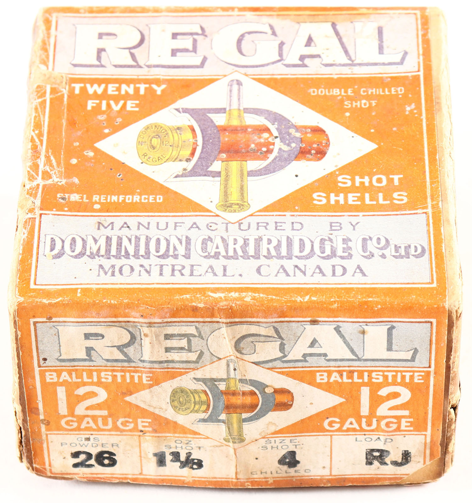 | RARE Dominion Cartridge Co., REGAL, 12ga., 2pc., Empty, shot siz...
