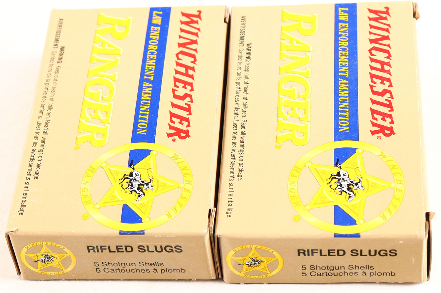 Lot of 2 Winchester, 12ga., 1pc., Appears full, shot size Rifled Slugs, multi-colored boxes. Grade: Excellent - Value: 8 to 30