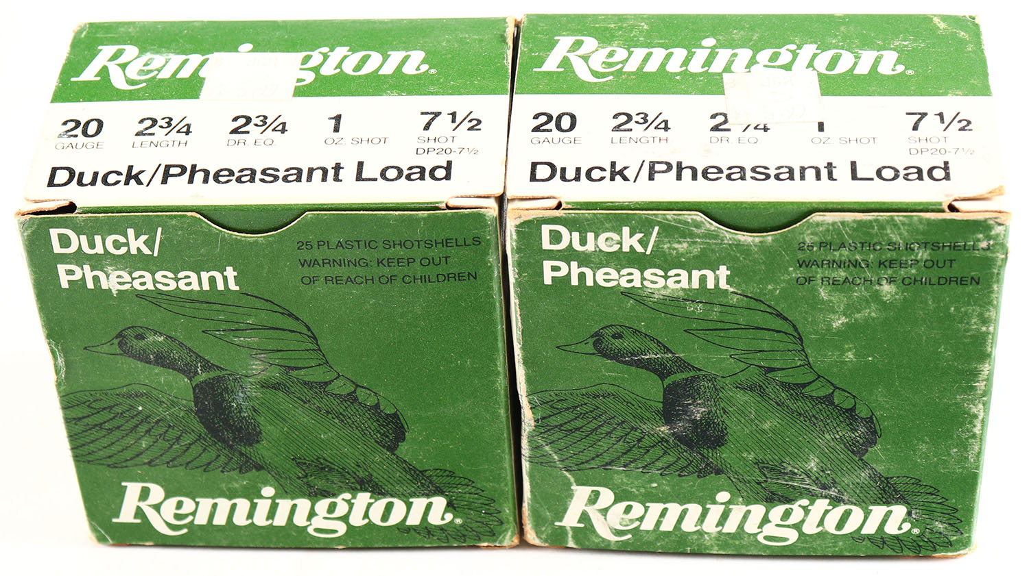 Lot of 2 Remington, 20ga., 1pc., shot size 7 1/2, Appears Full, multi-colored boxes. Grade: Excellent - Value: 10 to 30