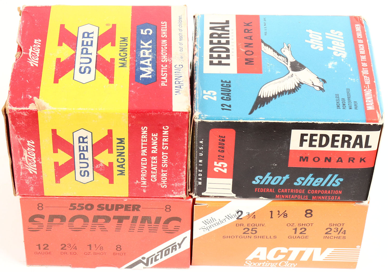 Lot of 4, Mixed Manufacture, 12ga., Appears Full, Shotshell Boxes. Grade: Very Good ++ - Value: 10 to 60