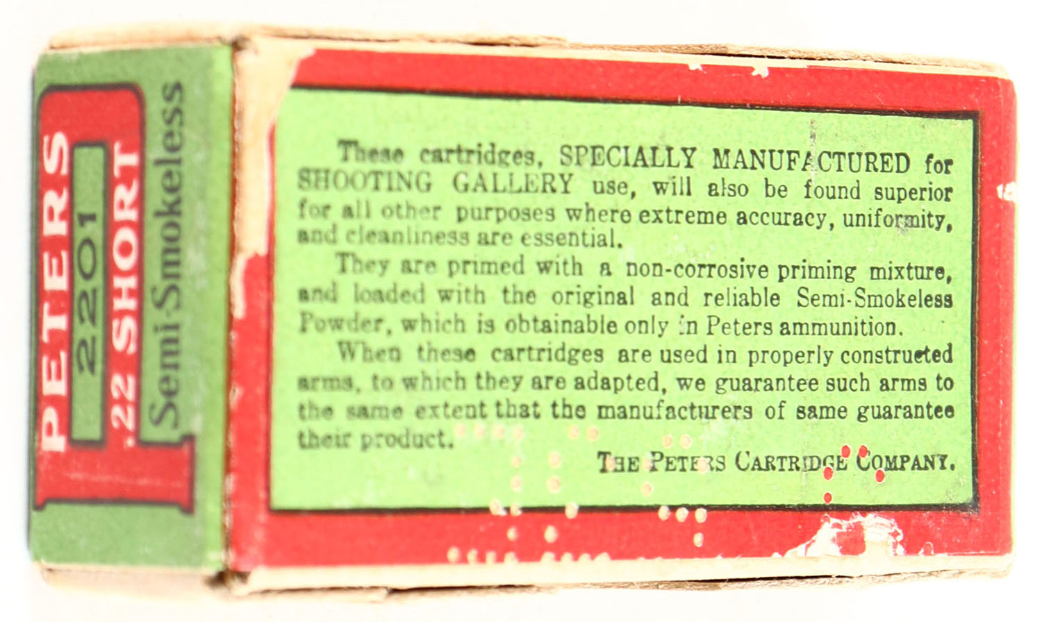 | Peters, R.F. Rifle Cartridges, .22 Short, Semi-Smokeless Powder,...