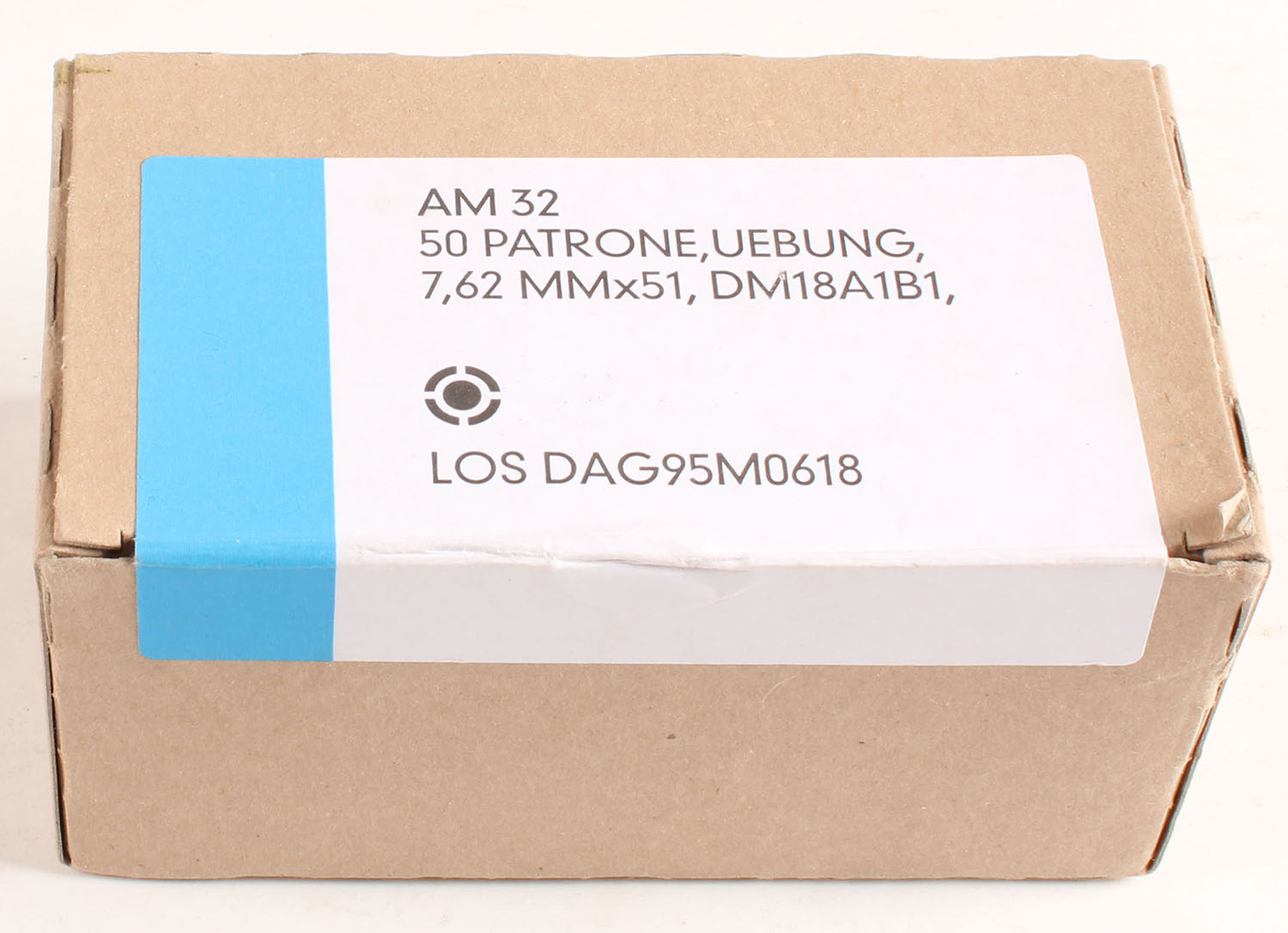 Los Dag, AM32, 7.62 x 51mm, Plastic Training Ammo, FULL & SEALED, 1pc. Buff box with white & blue label, box is near mint with minty color, label is intact. Grade: Excellent ++ - Value: 14 to 60