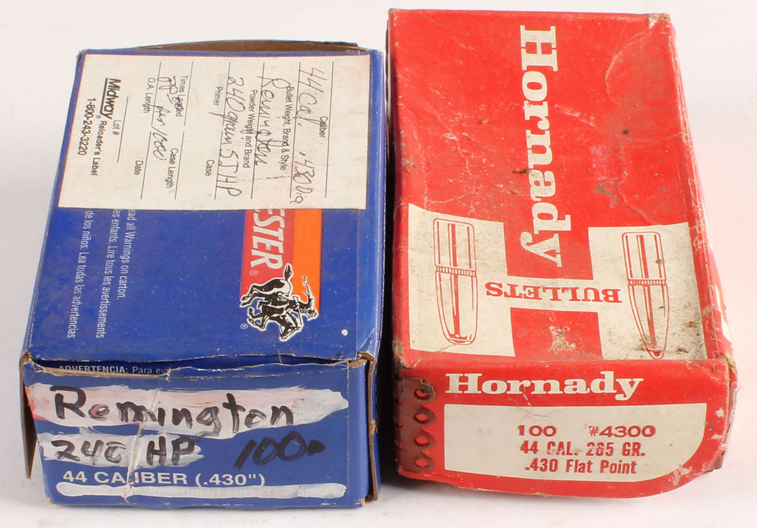 Mixed Mfg., Lot of 2, 44 Cal., (1) box 240 Grain STHP, (1) box 265 Grain, .430 Dia., 1 box appear Full. Grade: Very Good - Value: 10 to 50