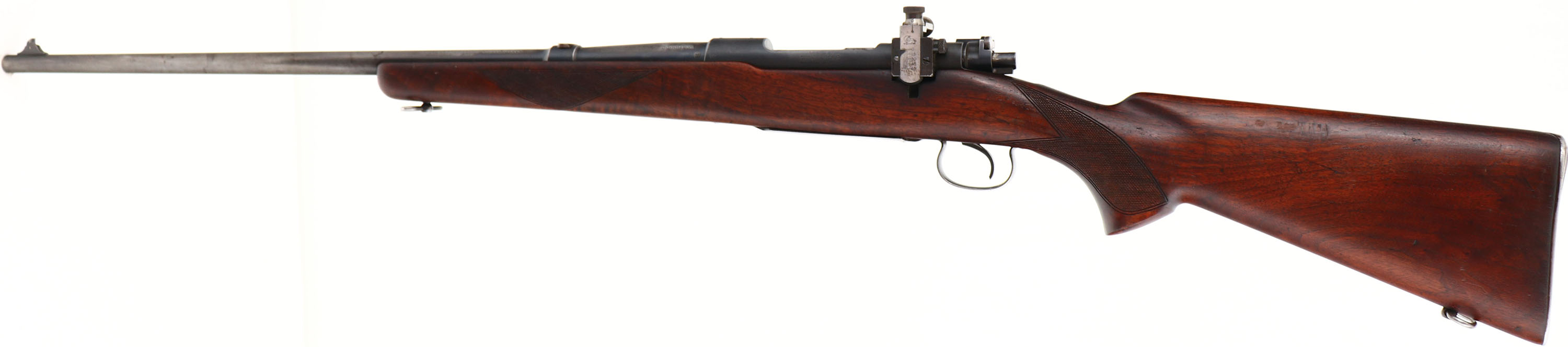 Winchester Model 54, CAL: .30 GOV'T'06., MFG: 1931, SN: 35168A, Bolt Action Rifle, 24'' barrel. The model 54 was the first successful civilian bolt action for Winchester. They are fairly rare model with total production of just over 50,000 in all variations from 1925 to 36. The original checkered & flat pistol grip wood stock on this example is very good, with several minor contusions, scrapes & scratches to the original finish, which has darkened from use & added oils. The original metal blue finish rates 80% on the receiver, 20% on the barrel, while the floorplate & trigger guard have worn & been polished silver. Bore is excellent. The rifle is fitted with an adjustable Lyman 48W receiver sight, while the barrel has a blank filled rear dovetail & pinned blade front sight. Some wood alteration around the Lyman receiver sight. Buttstock carries the original serrated metal buttplate. Sling loops. A good example of a rare early Winchester bolt action. FFL or C&R Req - Value: 1000 to 2000
