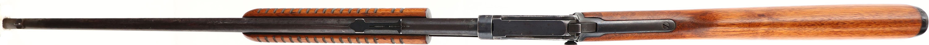 Winchester Model 62A, marked .22 S.L or L.R., MFG.1950, SN: 282119, Take-down. Pump Action Rifle, 23'' round barrel. The original factory straight grip wood stocks are very good, having been stripped, lightly sanded & reoiled. There are virtually no remaining handling marks. The original metal blue finish is 70% on receiver & mag, with 50% coverage of remaining finish toning to a brown patina on barrel. There are areas of light pitting on the metal surfaces. Bore is good & clean, but with areas of scarring. Barrel is fitted with factory sights. Factory buttplate. A solid old pump Winchester. FFL or C&R Req - Value: 350 to 700