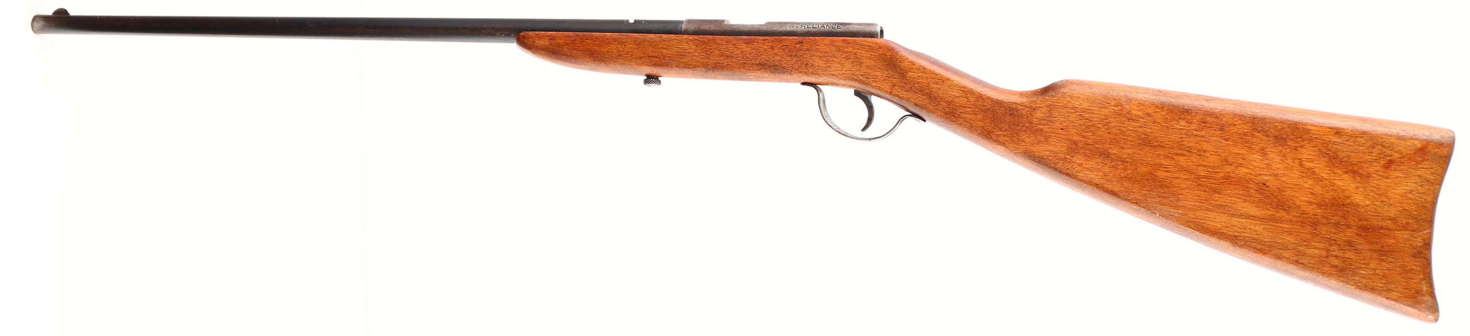 Page Lewis Arms Co., Model ''D'' Reliance, CAL: .22 LR. MFG: circa 1923-28, SN: NONE, Bolt rifle, 20'' Round barrel. The flat board straight grip stock is excellent & solid, with minor handling marks to the added layer of finish over the original finish. The metal blue finish on the barrel rates 60%, while the receiver has worn gun metal gray. Bore is very good. The barrel has an open rear dovetail & half moon front sights. Fabricated without a buttplate. The rifle is missing the bolt & is therefore is being sold ''AS IS'', with no returns. FFL or C&R Req. - Value: 20 to 60