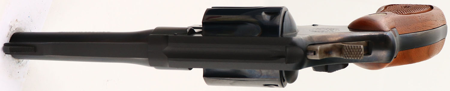 RARE & BOXED, Smith & Wesson, Model 520 ''.357 Magnum Military & Police'', CAL: 357 MAG, MFG: 1980 ONLY, SN: N560294, Double Action Revolver, 4'' barrel. These revolvers were originally ordered for the New York State Police, but never purchased or delivered. It is speculated that the contract was going to take too long to produce, so the NYSP looked into readily available firearms. These guns are usually found in NIB condition, as this example is. The S&W logo medallion checkered wood grips are excellent. The original metal blue finish rates 100% overall. The case-hardened trigger & hammer retain excellent case-colors. Bore is mint. Square notch rear sight & serrated blade front sight. Comes in SN matching box, with related paperwork, cleaning brush/rod & original packaging. FFL Req. - Value: 900 to 1200