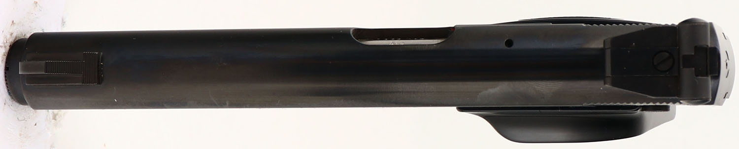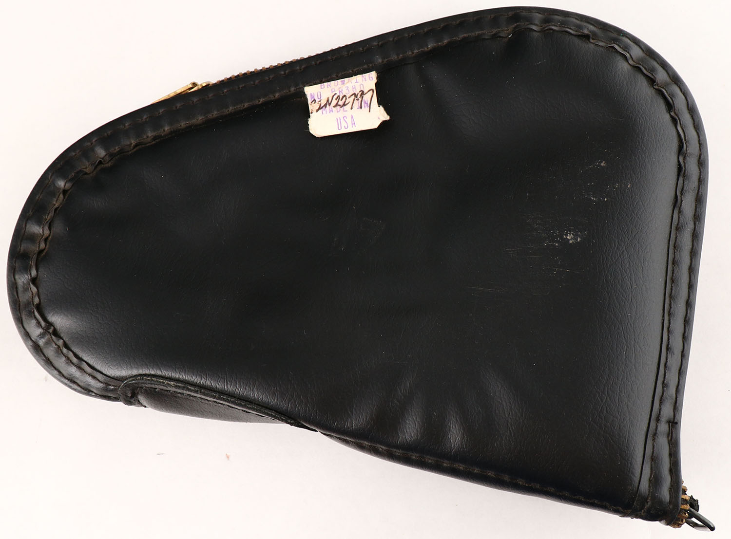 FN Browning, Model 10/71, CAL: .380, MFG: 1972, SN: 72N22797, Semi Auto Pistol, 4 3/8'' barrel. The original Browning checkered plastic grips are excellent. The original metal blue finish rates 99%+ overall. Bore is near mint. Factory adjustable rear sight & elevated serrated blade front sight. Comes with original pouch with red interior & instruction manual. A very high condition example of a Model 10/71. FFL or C&R Req - Value: 600 to 900