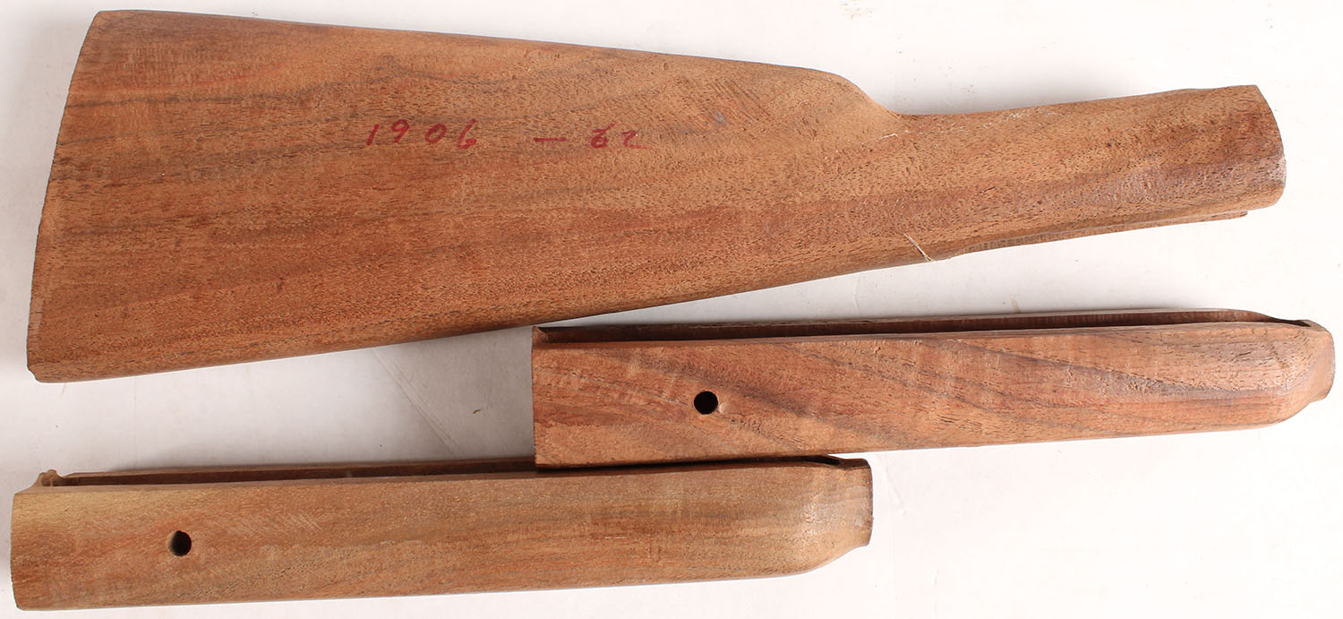Lot of three Winchester Model 62 stock pieces. One buttstock & two forends, all raw, un-finished. Will need final fit, sanding & finish. Grade: Excellent ++ - Value: 20 to 100