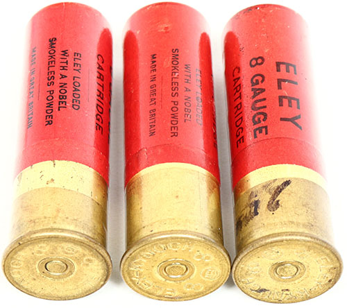 | Lot of 3, Eley, 8 ga., Loaded, red paper case. Grade: Very Good ...