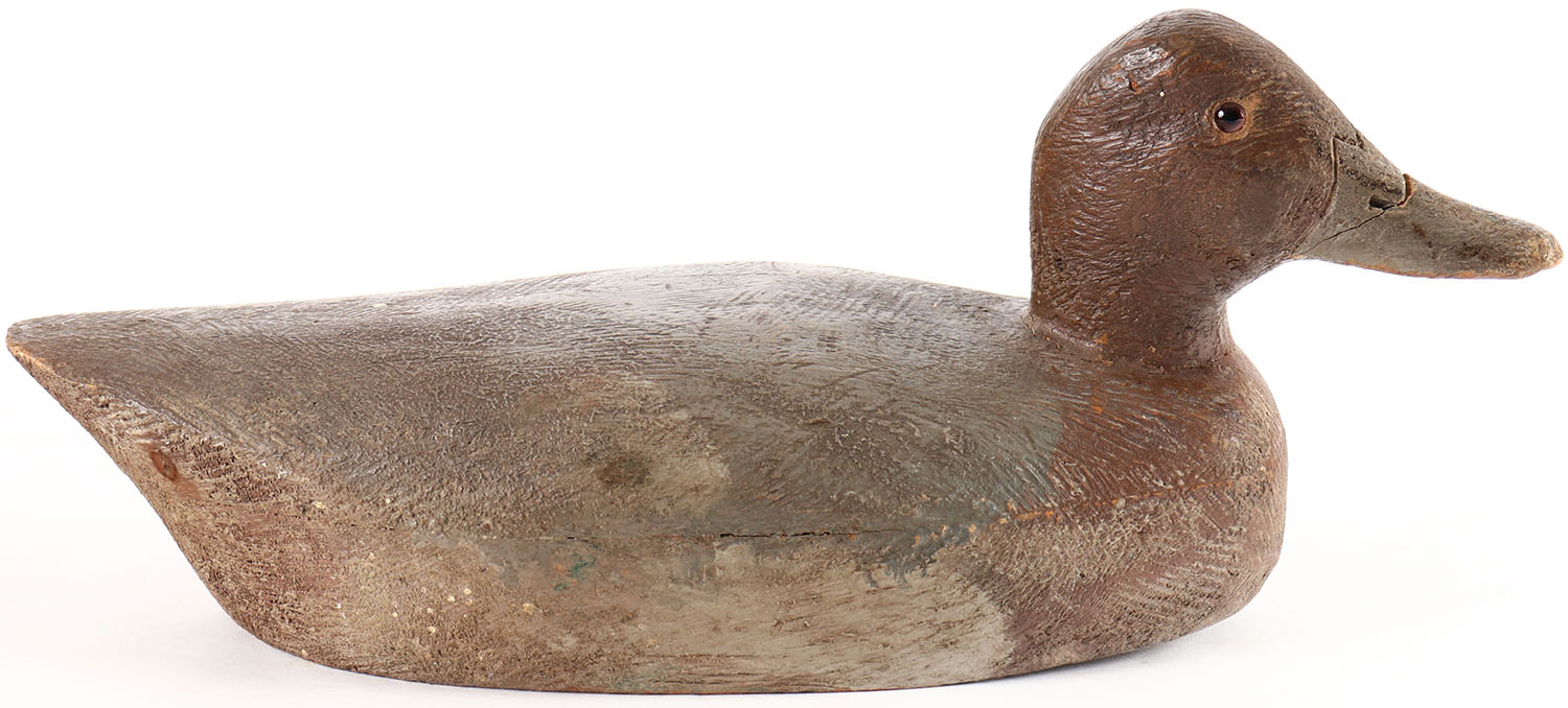 Canvasback Hen by unknown maker, glass eyes, solid wood, original paint, structurally excellent. Grade: Excellent - Value: 20 to 40