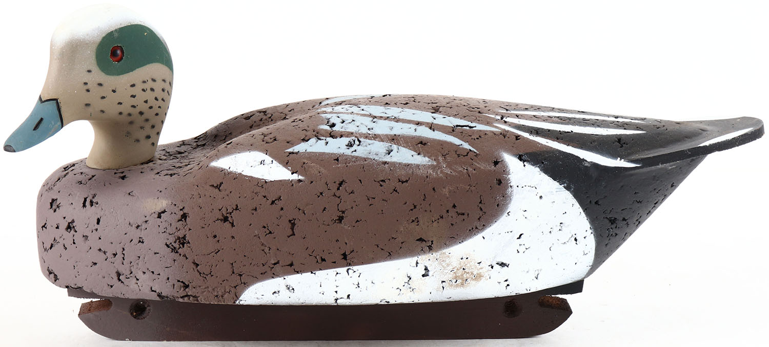 Widgeon Drake by unknown maker, glass eyes, solid cork body, original paint, structurally excellent. Grade: Excellent - Value: 10 to 40
