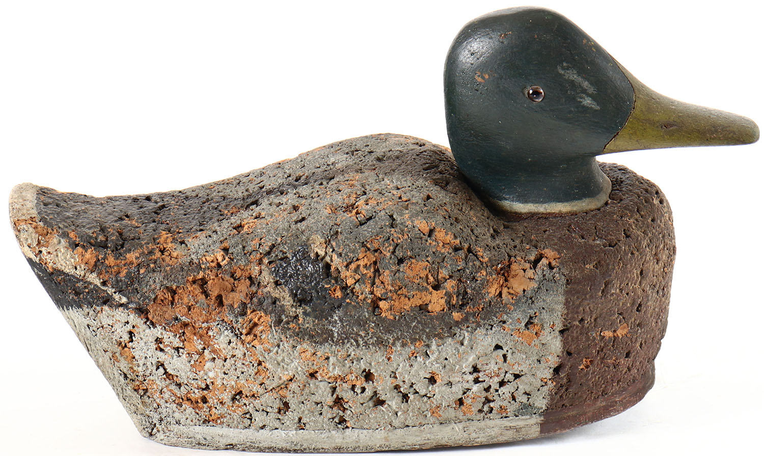 Mallard Drake by unknown Wisconsin maker, glass eyes, solid cork body, original paint, structurally excellent. Grade: Excellent - Value: 10 to 40