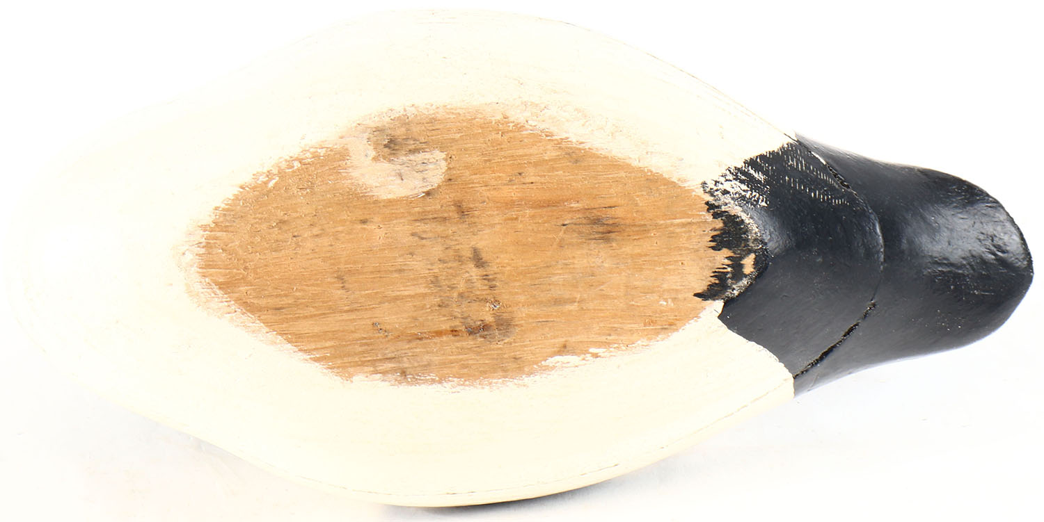Preening Goldeneye Drake by unknown maker, painted eyes, solid wood, original paint, structurally excellent. Grade: Excellent - Value: 10 to 30