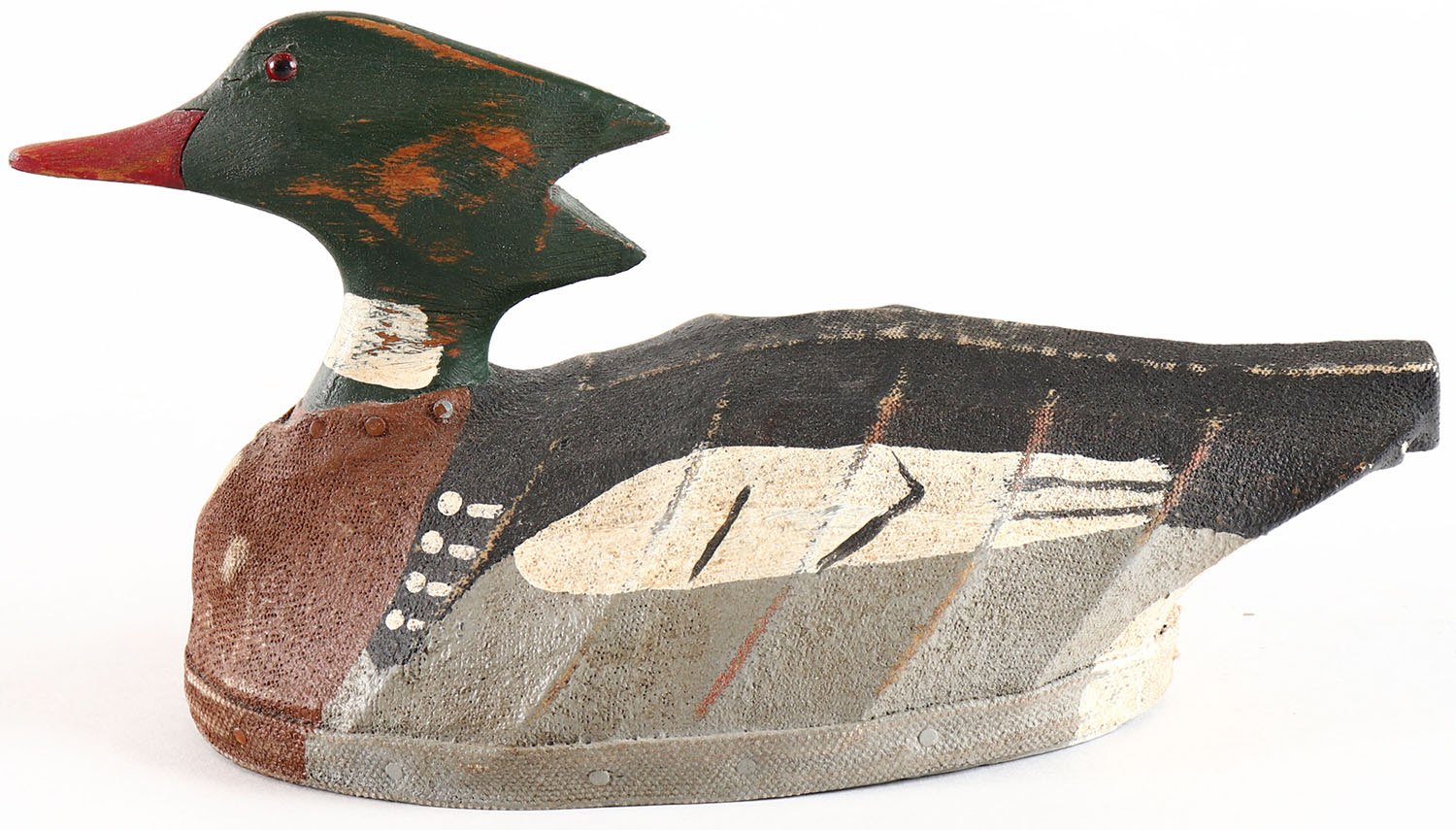 Small Red Breasted Merganser by unknown maker, glass eyes, solid wood, original paint, structurally excellent. Grade: Very Good ++ - Value: 10 to 50