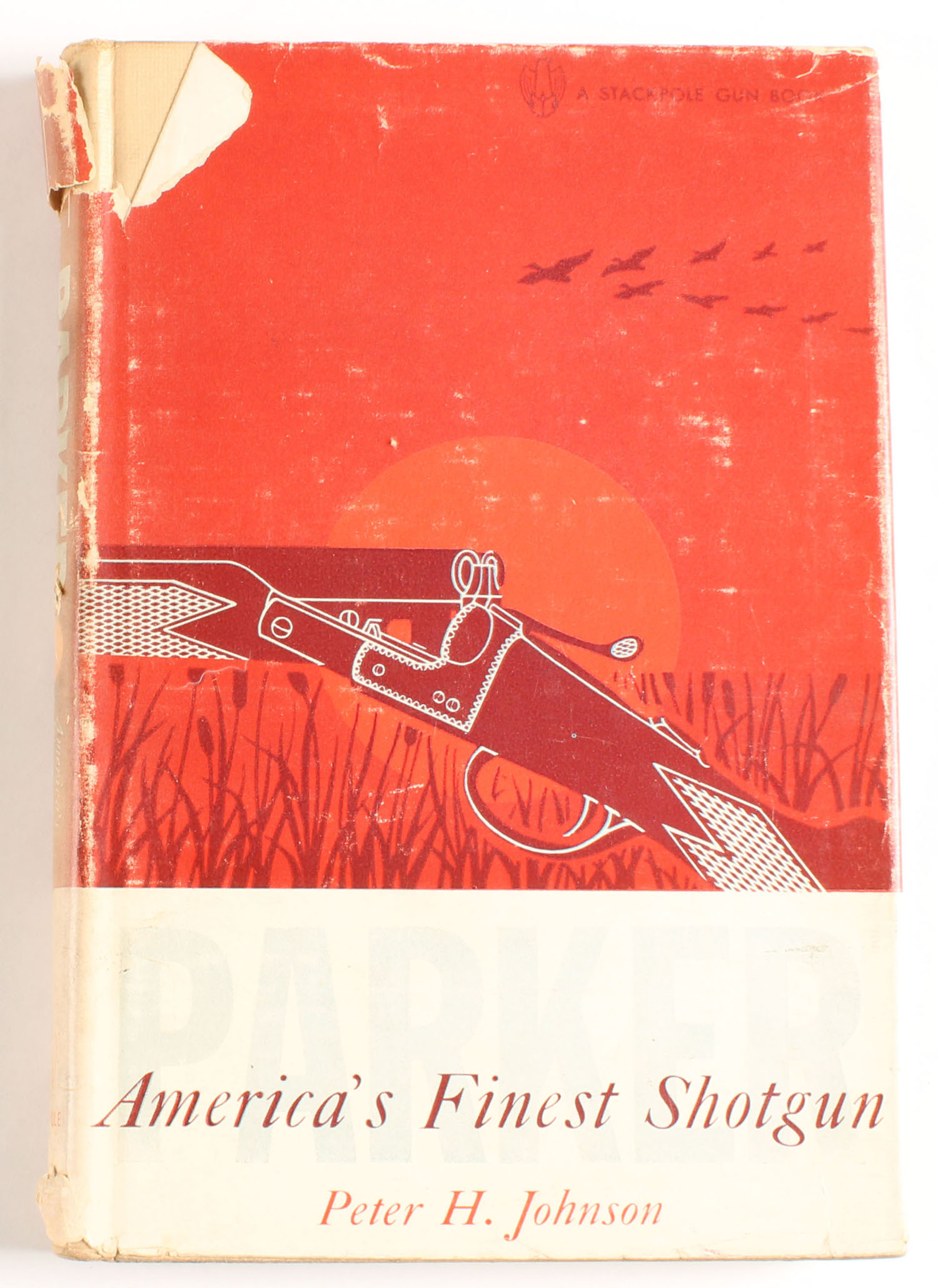 Parker: Americas Finest Shotgun by Peter H. Johnson, 6'' x 9''. 260 pages, pages clean, binding tight, hardcover very good, dustjacket has some rips, b/w images. Value: $70 Grade: Very Good + - Value: 4 to 70