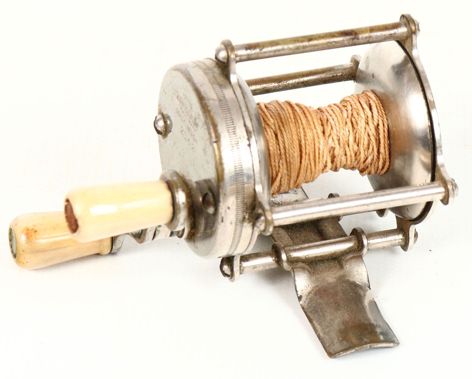 Winchester No. 2142 reel, 40 Yd., reel turns nice, dual buff handle, strong click. Grade: Excellent + - Value: 30 to 100
