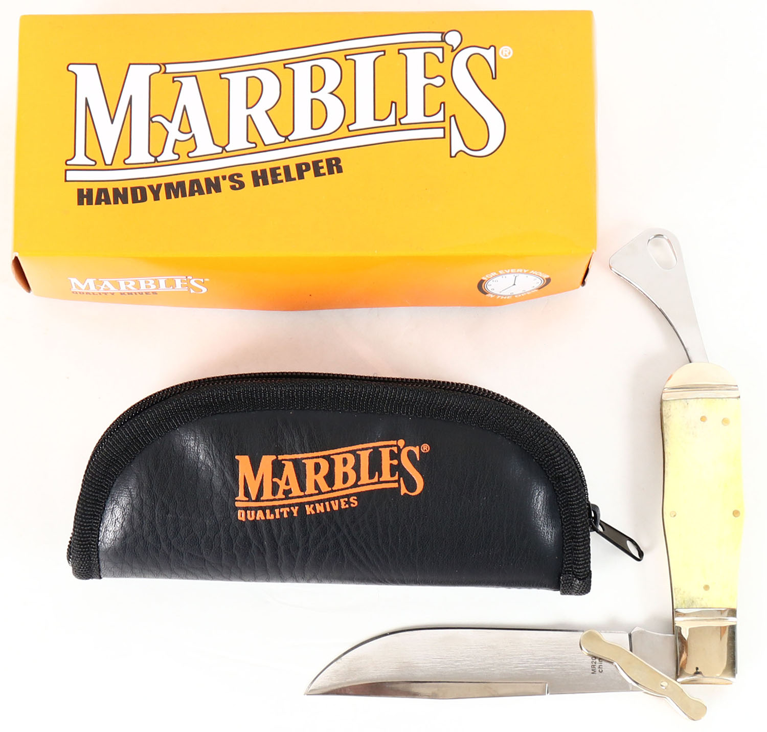 Marbles knife, with scrimshaw, wildlife series, MR 203, brand new, in box with sheath, very nice Grade: Excellent ++ - Value: 20 to 80
