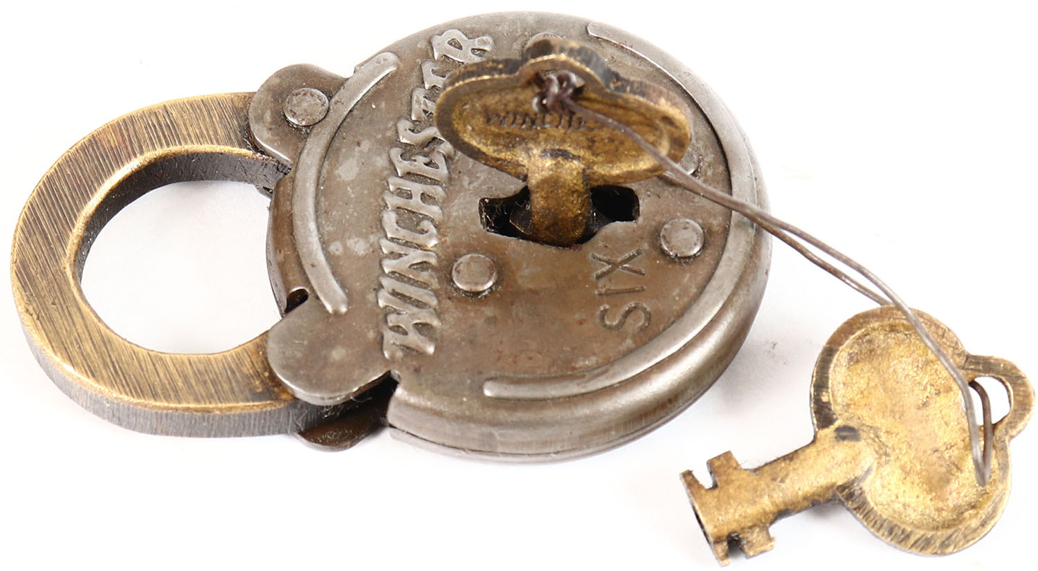 Winchester padlock, has keys. Grade: Very Good ++ - Value: 6 to 50