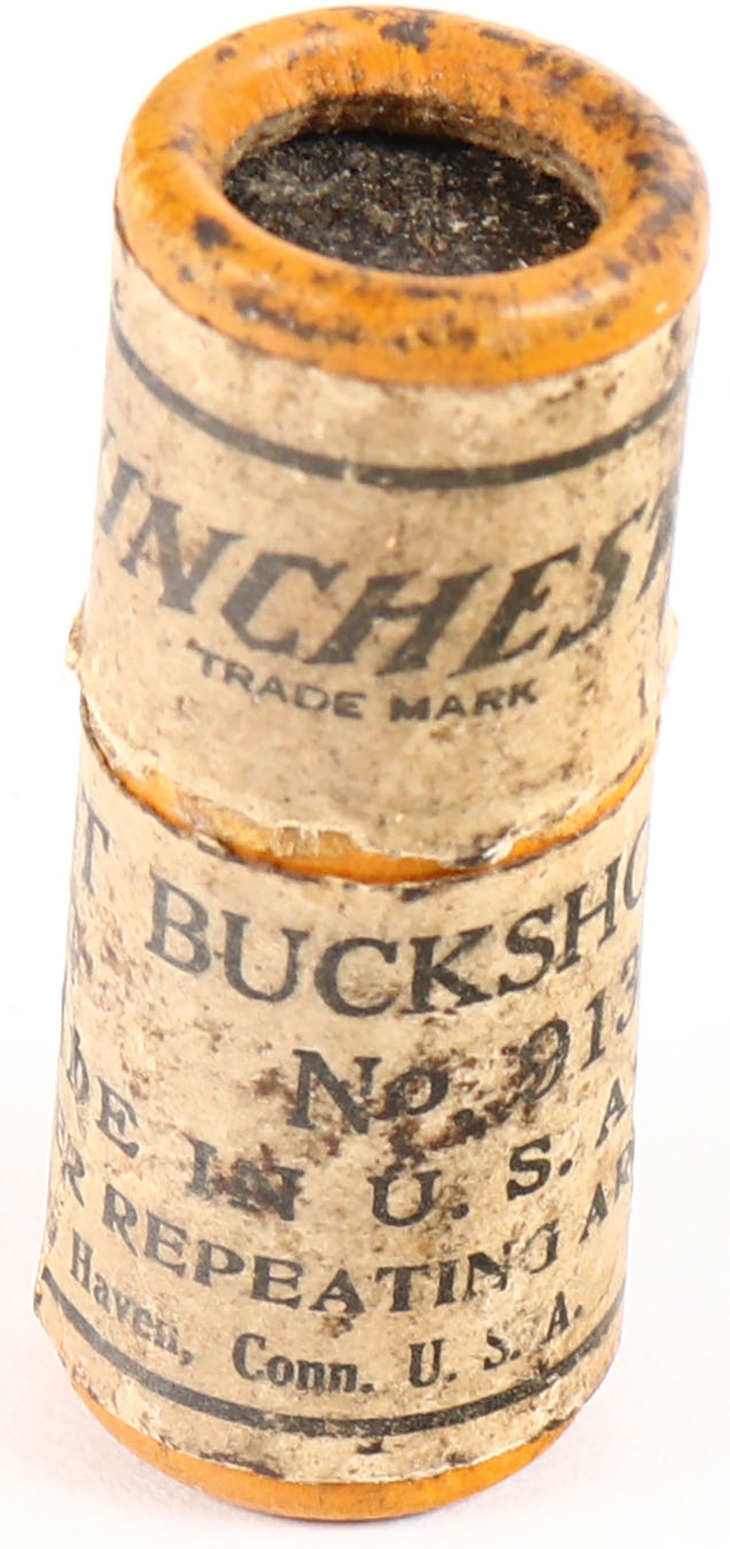RARE! Winchester Split buck shot, FULL, No. 9135, tube and label have age soiling. Grade: Very Good ++ - Value: 40 to 100