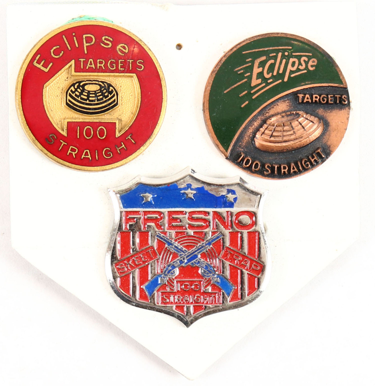 Lot of 3 trap shooting pinbacks. Grade: Excellent - Value: 10 to 50