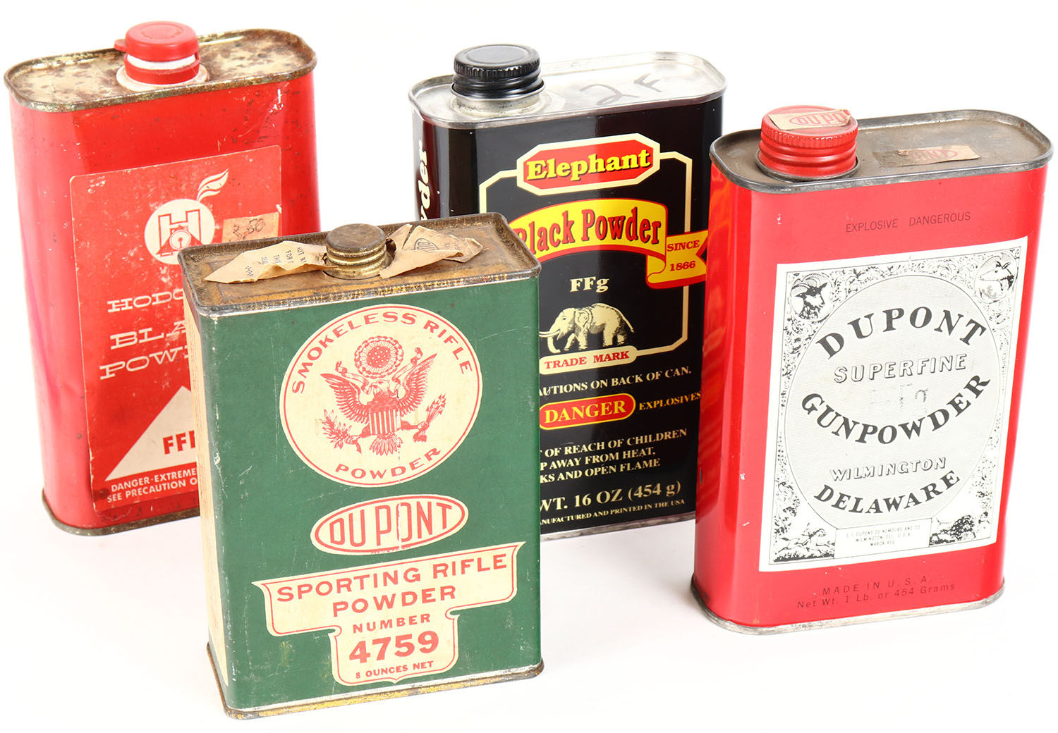 Lot of 4 Rifle Powder tin, all partial. Grade: Excellent - Value: 6 to 60