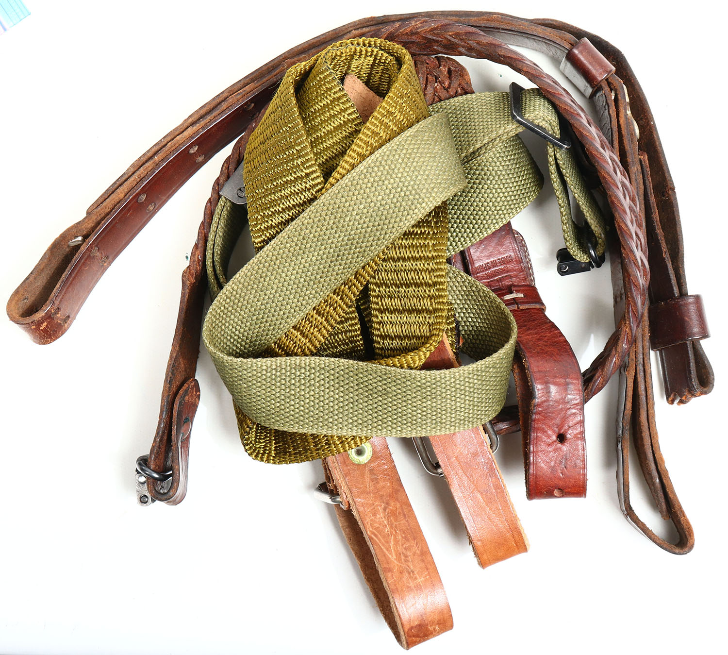 Lot of 4 leather and nylon gun slings. Grade: Very Good ++ - Value: 2 to 40