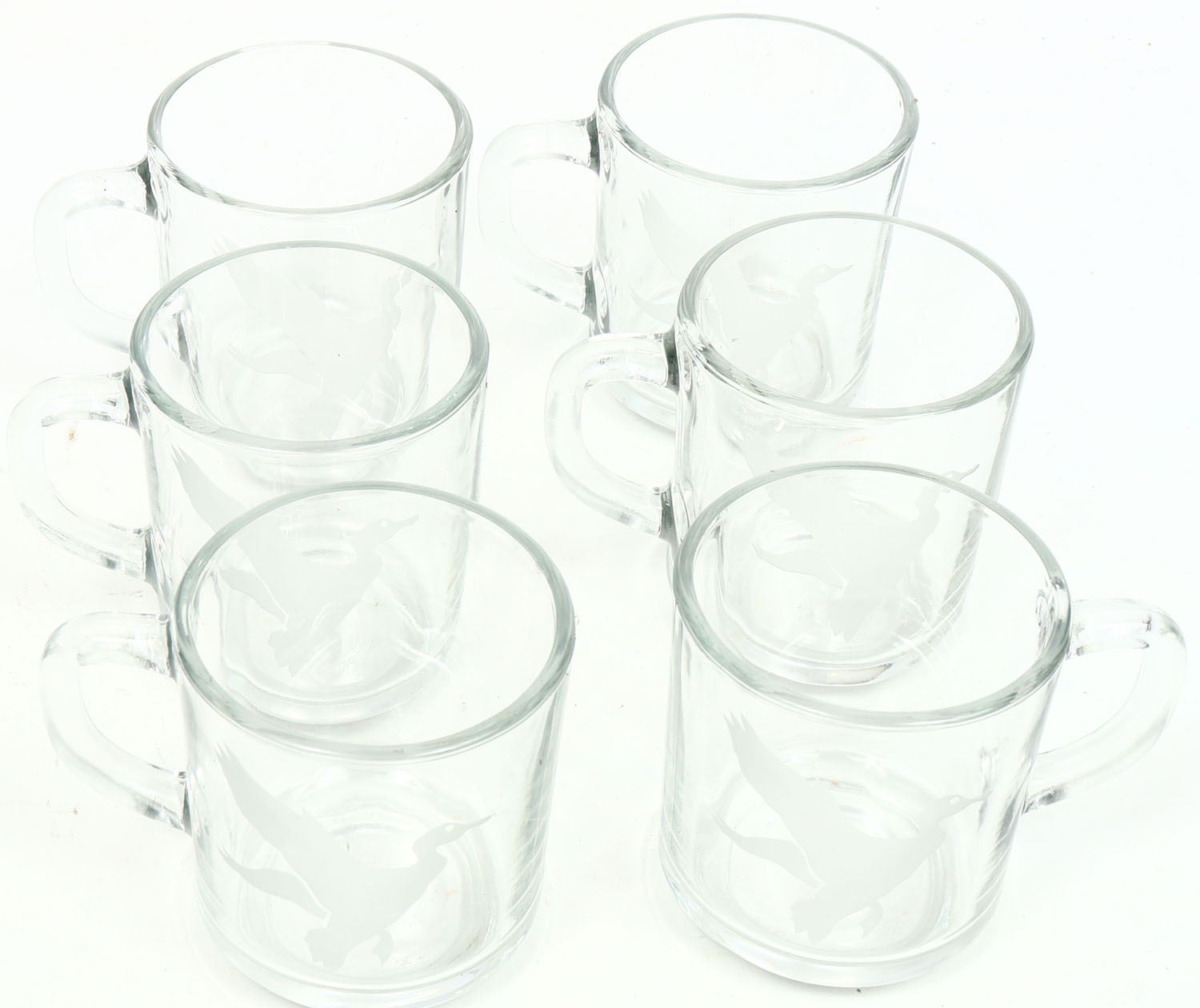 Set of glass mugs with an image or ducks in flight. Grade: Excellent ++ - Value: 6 to 50