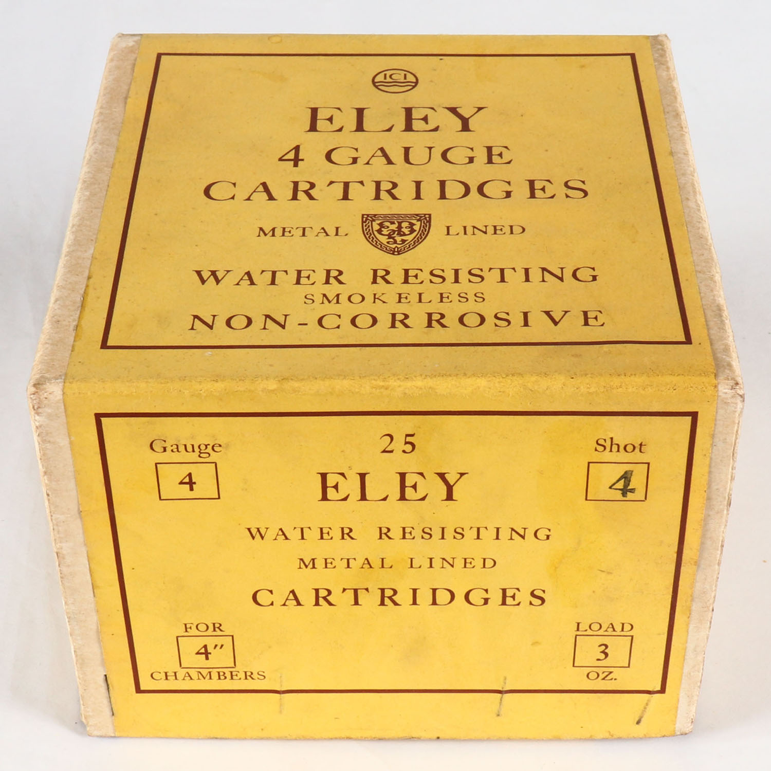 | Eley, 4ga, 2pc., Partial 1rd, shot size 4, 4'', buff box with ...