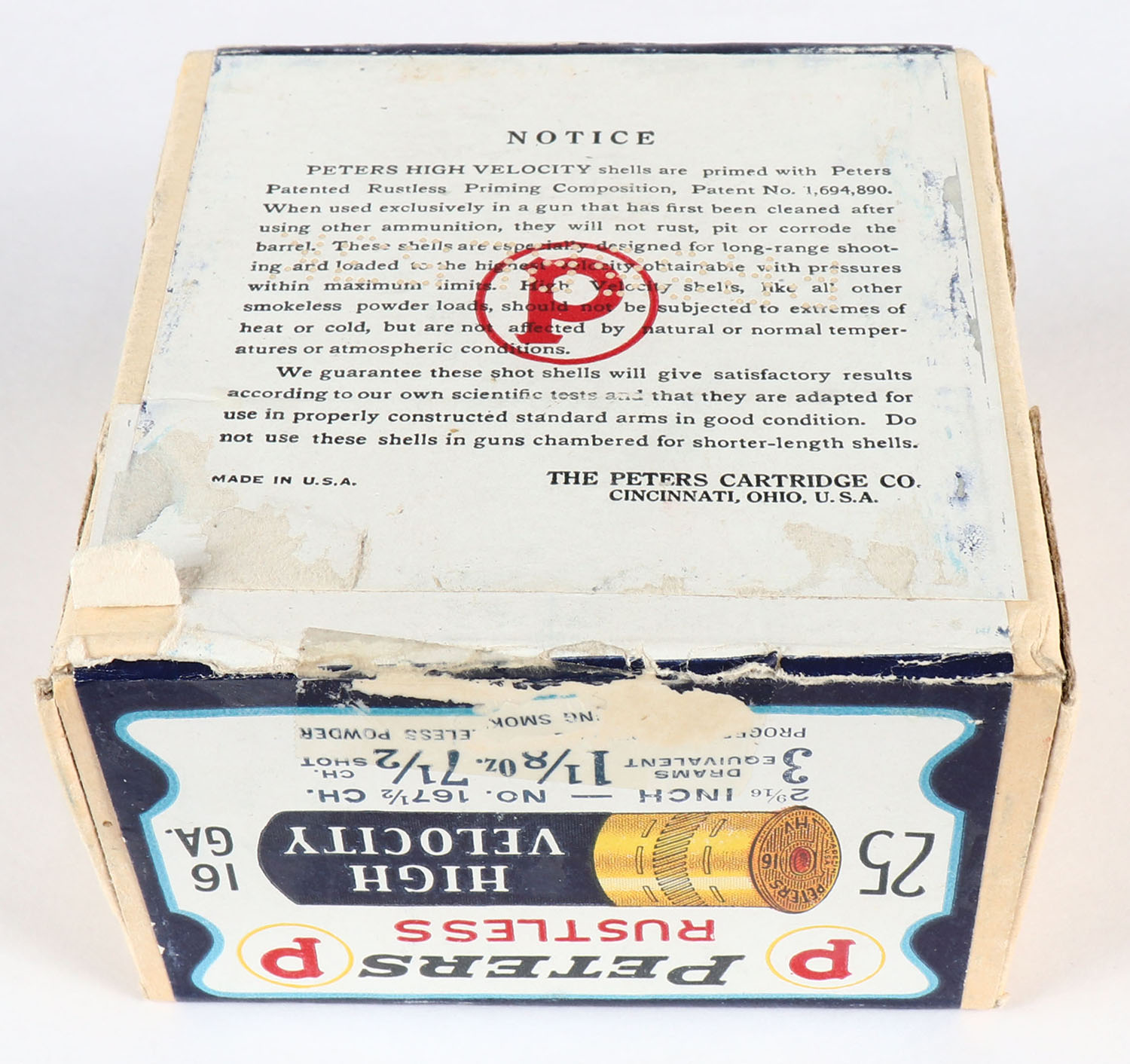 | Peters Cart. Co., Blue Bill, 12ga., 2pc., FULL & SEALED, shot s...