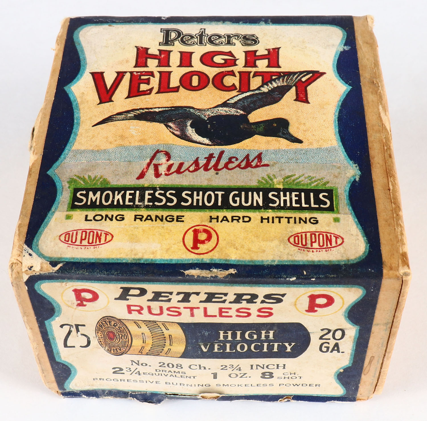 | Peters Cart. Co., Blue Bill, 20ga., 2pc., FULL and SEALED, shot ...