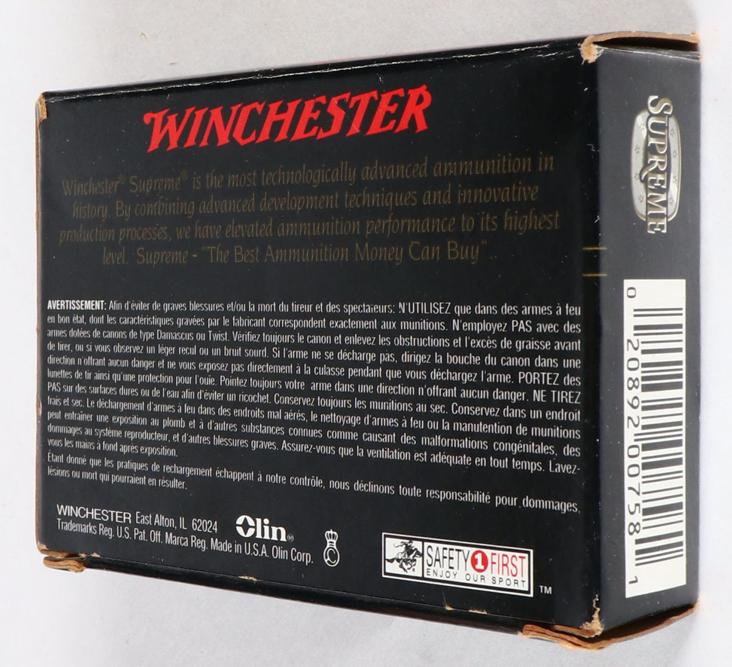 Winchester, Supreme, 12ga., 3'', 1pc., Full, 1 oz. Slug, box is very solid, shells are excellent. Grade: Excellent - Value: 8 to 20