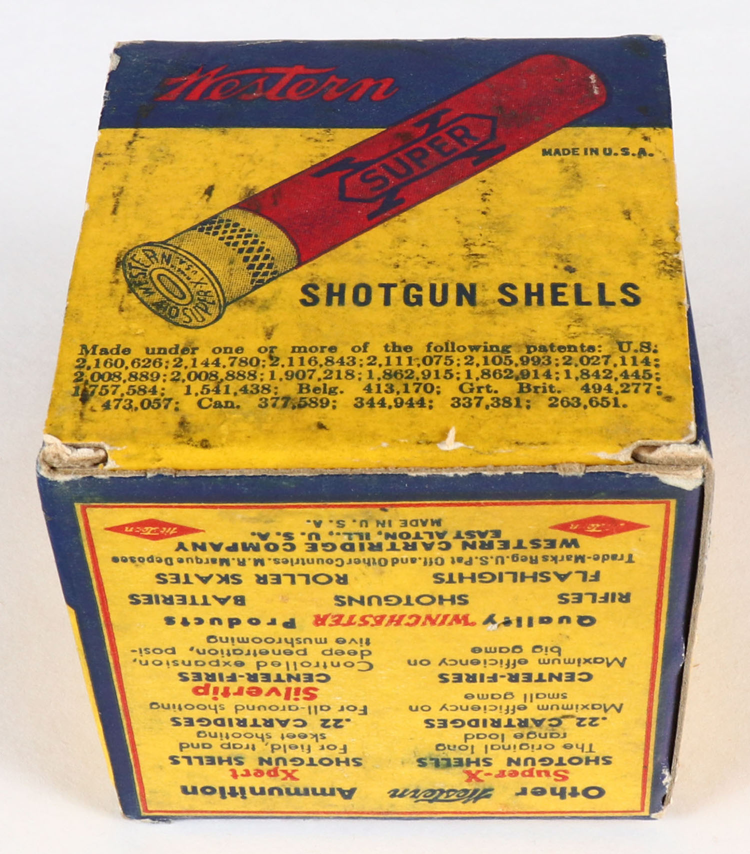 Western, Super X, 410ga., 1pc., Full, shot size 7 1/2 CH, 2 1/2'', multi-colored box, box has minor soiling with very nice colors, shells are excellent. Grade: Very Good ++ - Value: 10 to 40