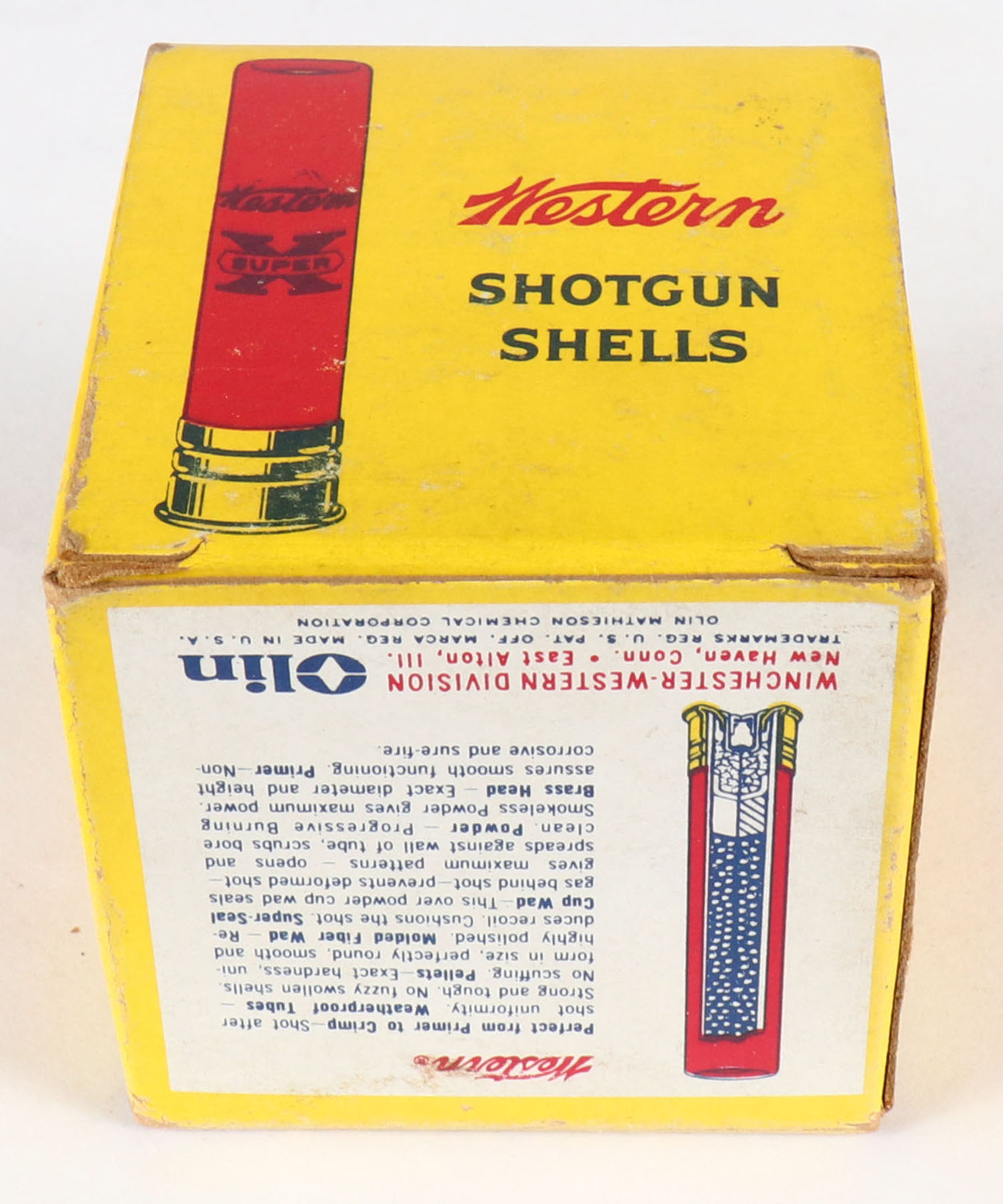Western, Super X, 410ga., 2 1/2'', 1pc., Full, shot size 7 1/2, yellow, blue & red box, box is solid with light scuffing, box has great colors, shells are excellent. Grade: Very Good ++ - Value: 10 to 30
