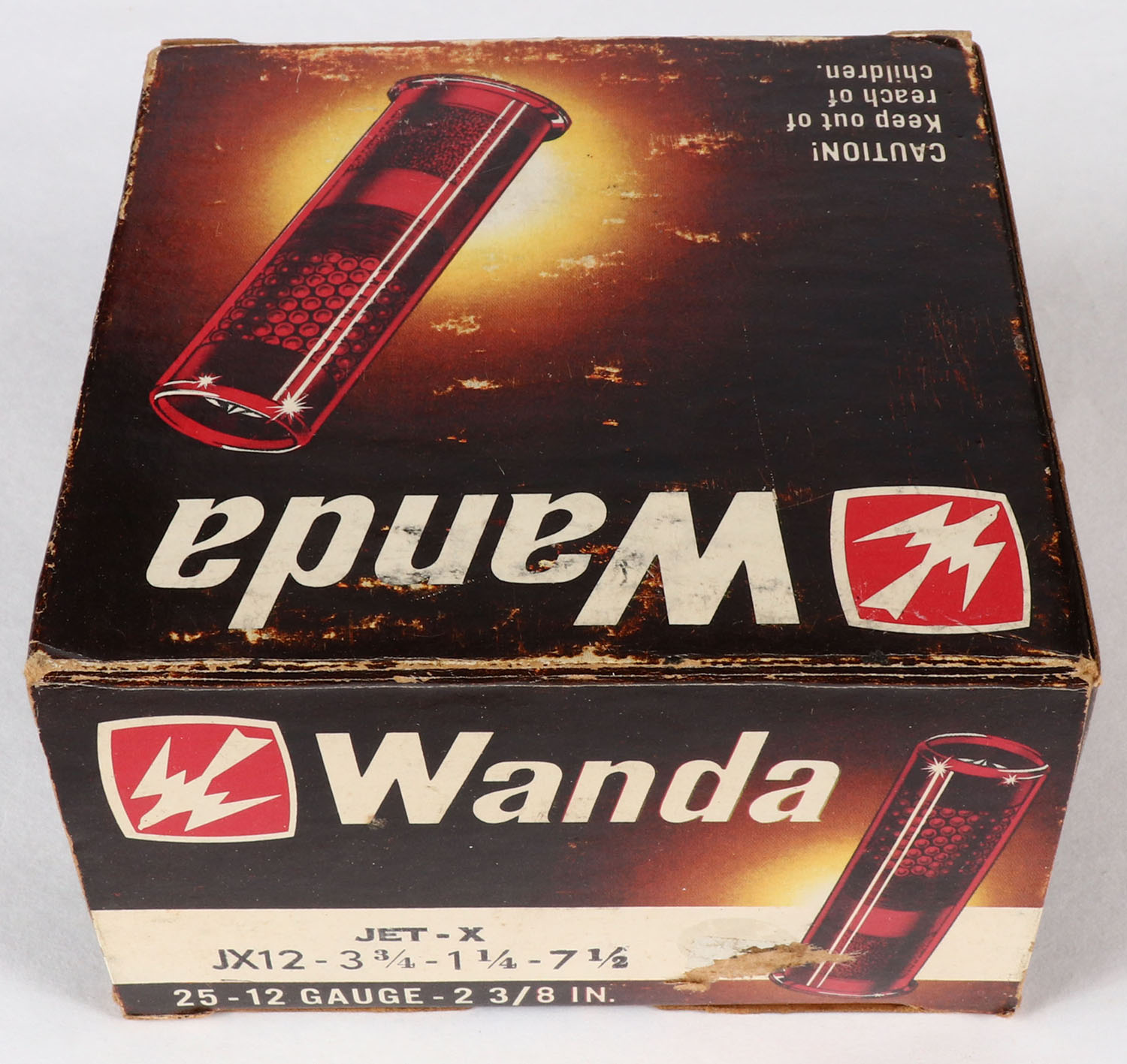 Wanda, 12ga., Full, shot size 7 1/2, multi-colored box, box is solid, shells are excellent. Grade: Very Good ++ - Value: 10 to 20