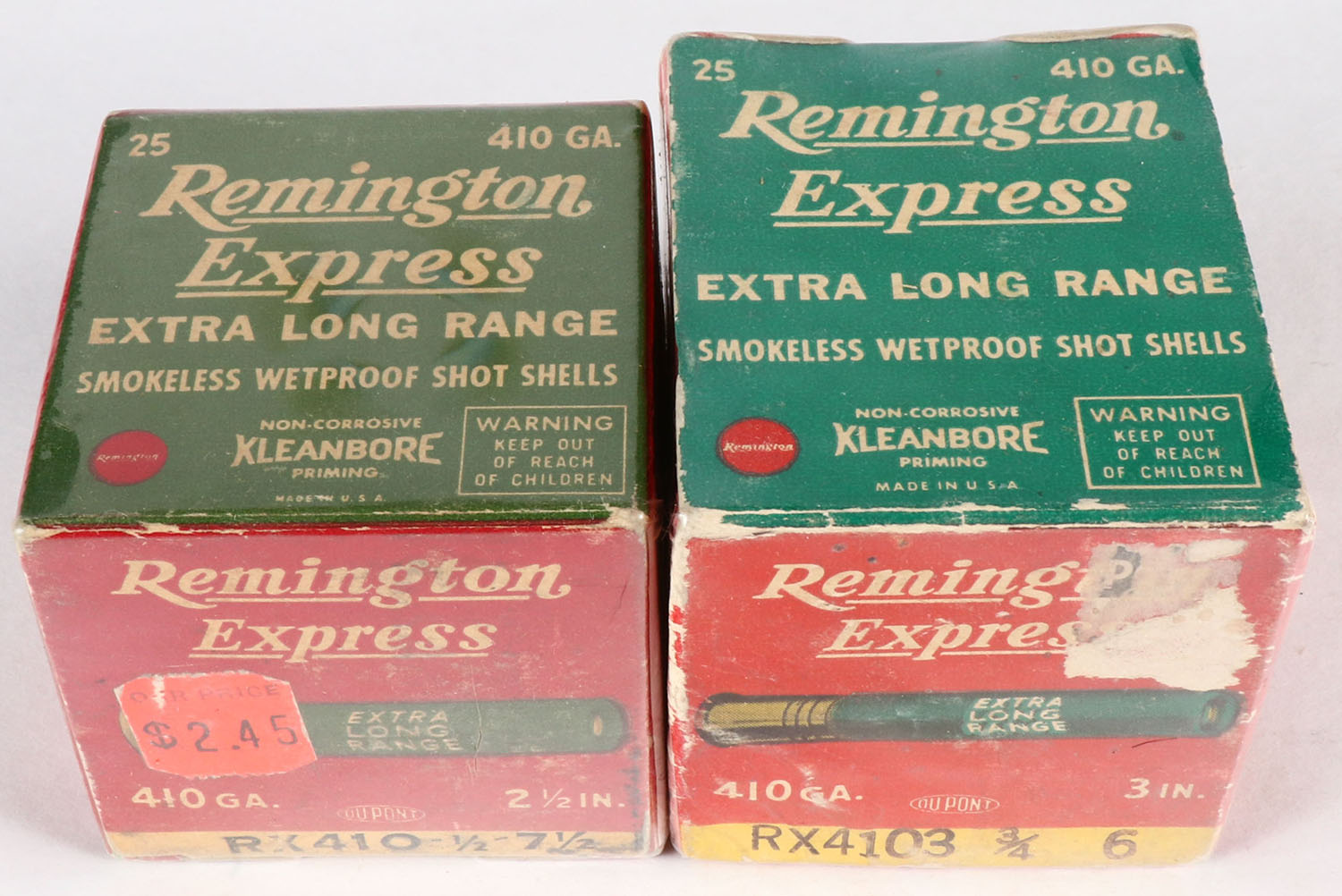 Lot of 2 Remington, 410ga., 1pc., 2 1/2'' & 3'' Appears Full, multi-colored boxes. Grade: Excellent - Value: 10 to 50