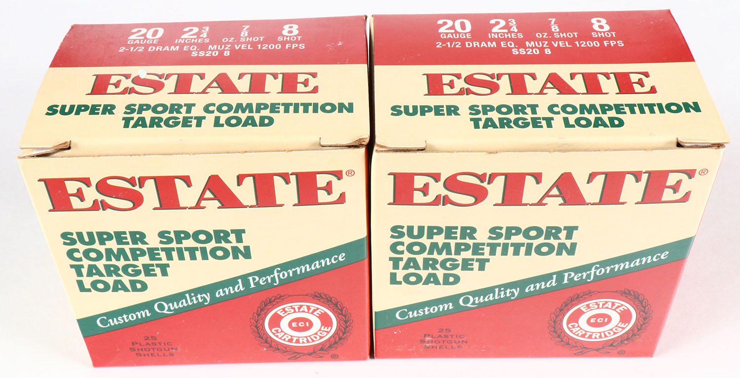 Lot of 2 Estate, 20ga., 1pc., Appears Full, shot size 8, multi-colored boxes, boxes are very solid. Grade: Excellent + - Value: 10 to 30