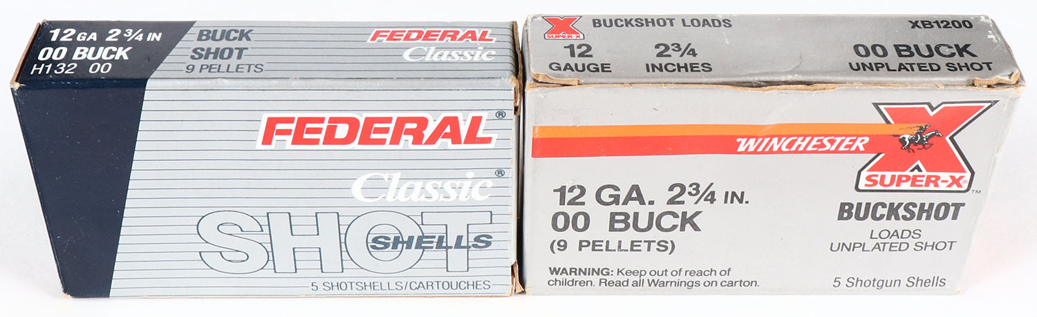 Lot of 2 Winchester & Federal, 12ga., 1pc., Appears Full, shot size 00 BUCK, multi-colored box. Grade: Very Good ++ - Value: 10 to 30