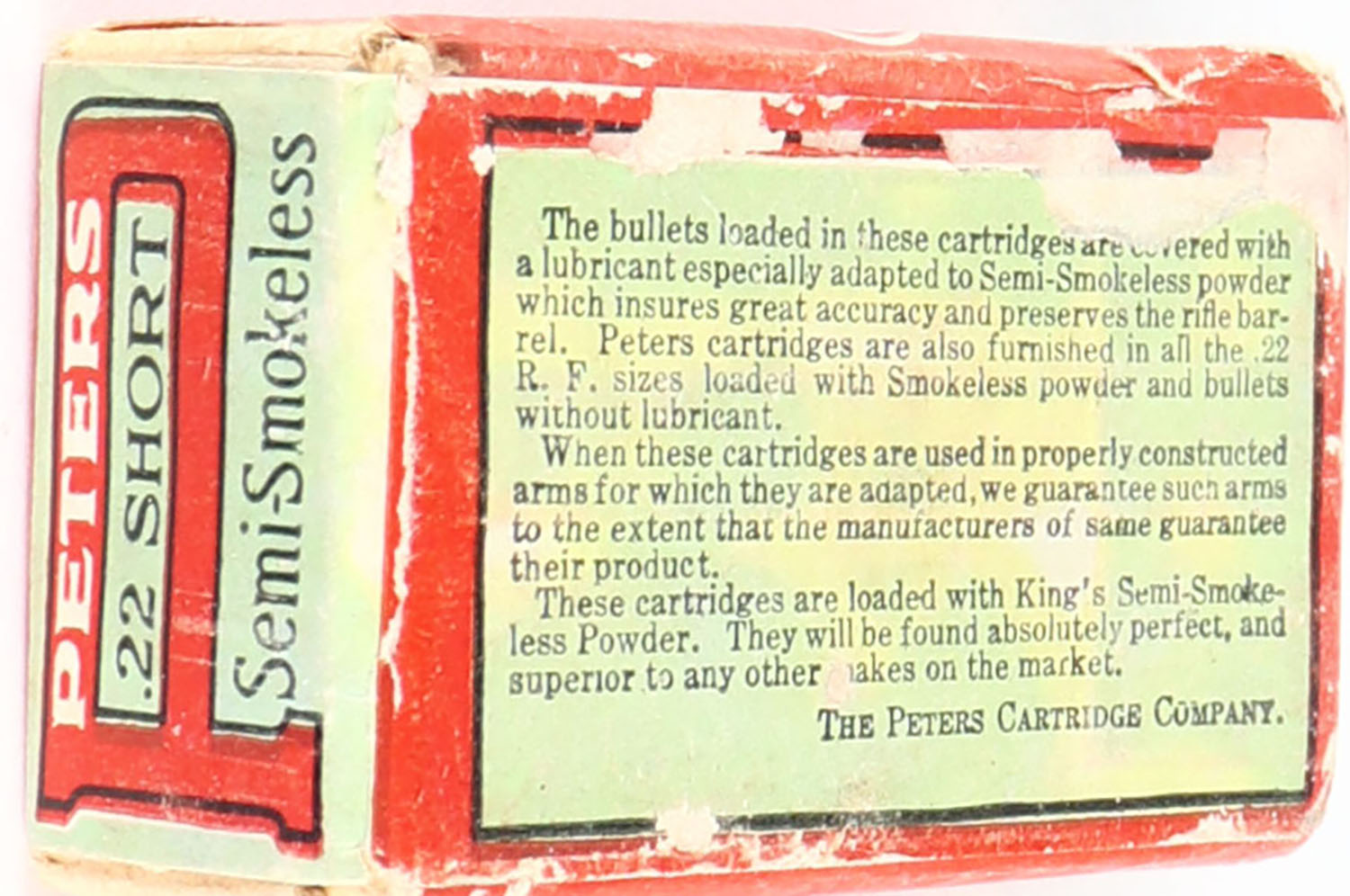 | Peters, R.F. Rifle Cartridges, .22 Short, Semi- Smokeless Powder...